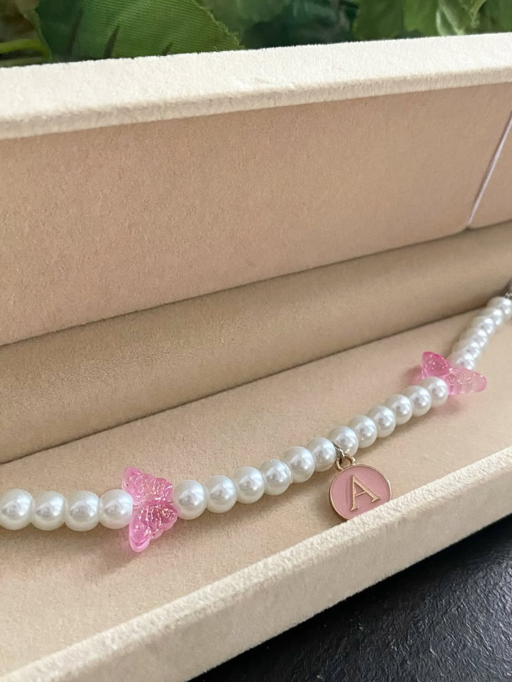 Jadilah yang pertama memberikan ulasan “Bracelet with a glittery pink butterfly charm and the letter A”